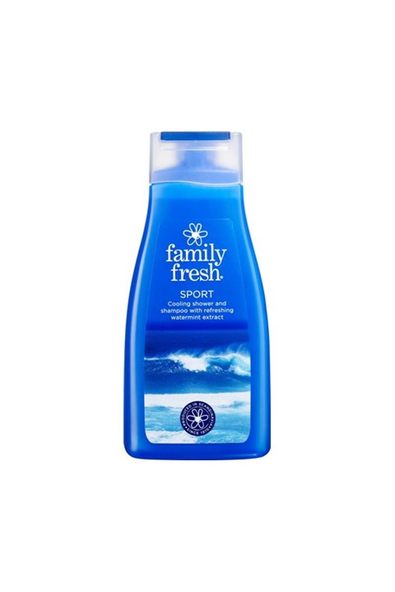Family Fresh Sport Shower Shampoo er en shampoo og dusjsåpe med en oppfriskende ren duft. Fresh skummende effekt med mintekstrakt som gir ny energi og virker nedkjølende etter en hard treningsøkt.