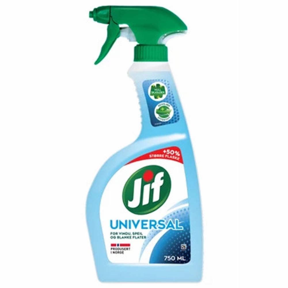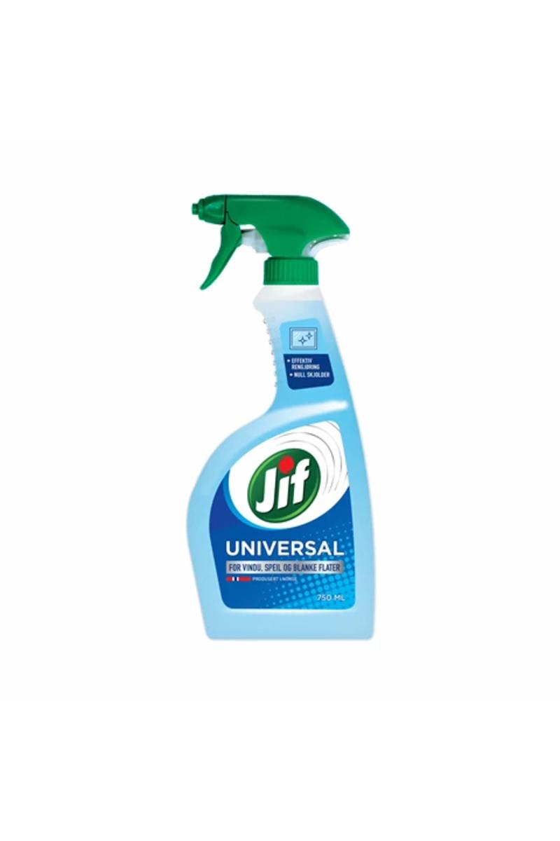 Jif Universal Spray er tøff mot smuss og flekker på vinduer, speil og blanke overflater. Universalsprayen etterlater flatene skinnende rene og sørger for et skjoldefritt resultat.