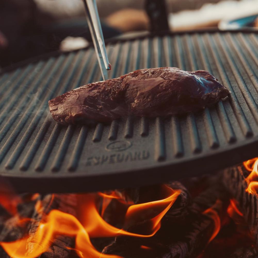 Støpejern har vært brukt i flere hundre år og er et av de beste materialene som finnes til matlaging. De unike varmeegenskapene sørger for jevn varme som frembringer de aller beste smakene i maten. Grillplata kan brukes over alle varmekilder, inkludert bål og induksjon. Med riktig stell og behandling vil plata vare i mange generasjoner.
