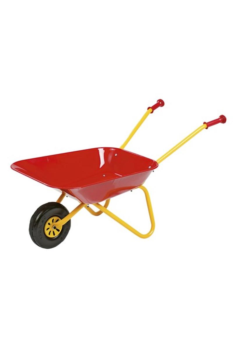 Kraftig barnetrillebår med forsterket kasse og kraftig hjul. Den perfekte trillebåren til uteaktive barn. Rødklakkert. Produsert i Italia. Vekt: 2,36 kg. Mål: 77x37x47cm