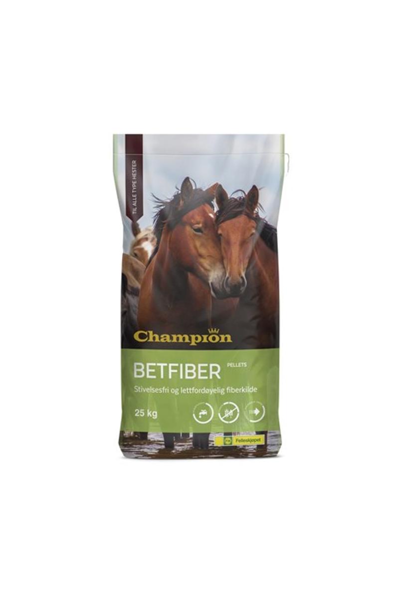 Champion Betfiber inneholder ikke melasse, og er helt stivelsesfritt. Fôret har størst ernæringsmessig gevisnt til hester på høye kraftfôrrasjoner eller hester som skal ha lite stivelse i rasjonen, for eksempel hester med som har lett for å få krysslammelse. Kan tildeles med inntil 0,4 kg per 100 kg kroppsvekt daglig, men det er mer vanlig å bruke betydelig lavere mengder.
