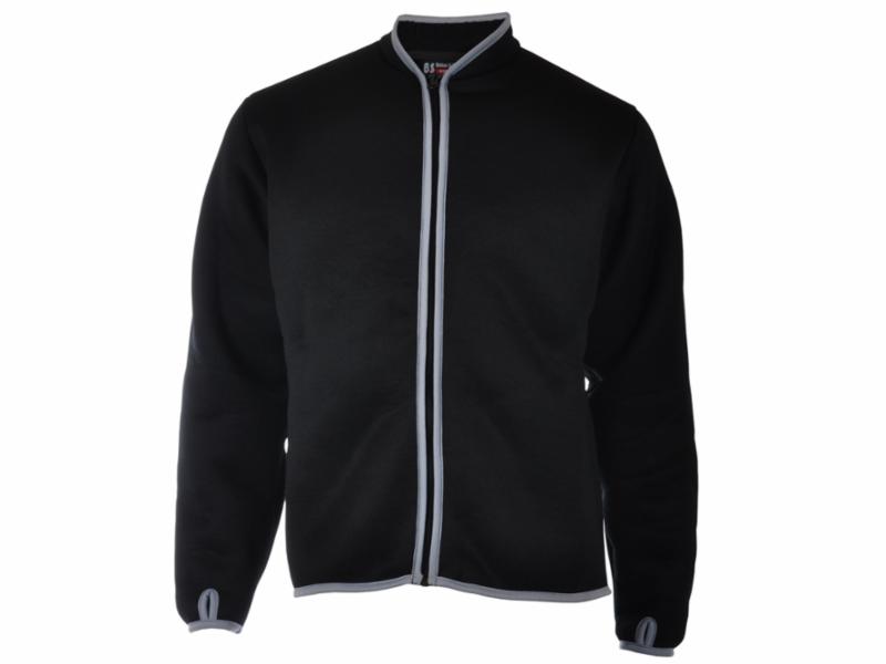 Fiberpelsjakke med lang rygg. Lang glidelås i front.