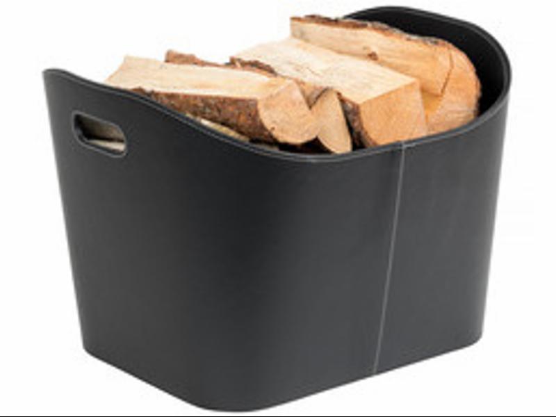 Romslig 80 liters vedkurv i sort imitert skinn med praktiske bærehåndtak. Ovale linjer og stilrent design gjør denne vedkurven både bruksvennlig og moderne.
