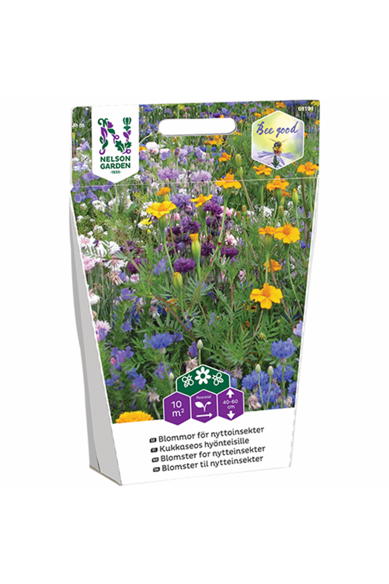 En miks av ett- og flerårige sorter som elskes av insekter. Dyrkes ved frukt- og grønnsaksplanter for å gi vern og mat til pollinerende insekter og nytteinsekter som motvirker skadegjørere. Bland gjerne frøene med sand eller lignende. Da blir det lettere å så dem. Så i april-nov. Så om våren for blomstring til sommeren. Så på høsten for blomstring påfølgende år. Spre frøene jevnt utover, pakk jorden sammen og hold såingen fuktig. Slå engen etter blomstring slik at frøene spres, og rak bort avklippet. Inneholder 16 ettårige planter og 9 stauder, bl.a. kornblomst, fløyelsblomst og ringblomst.