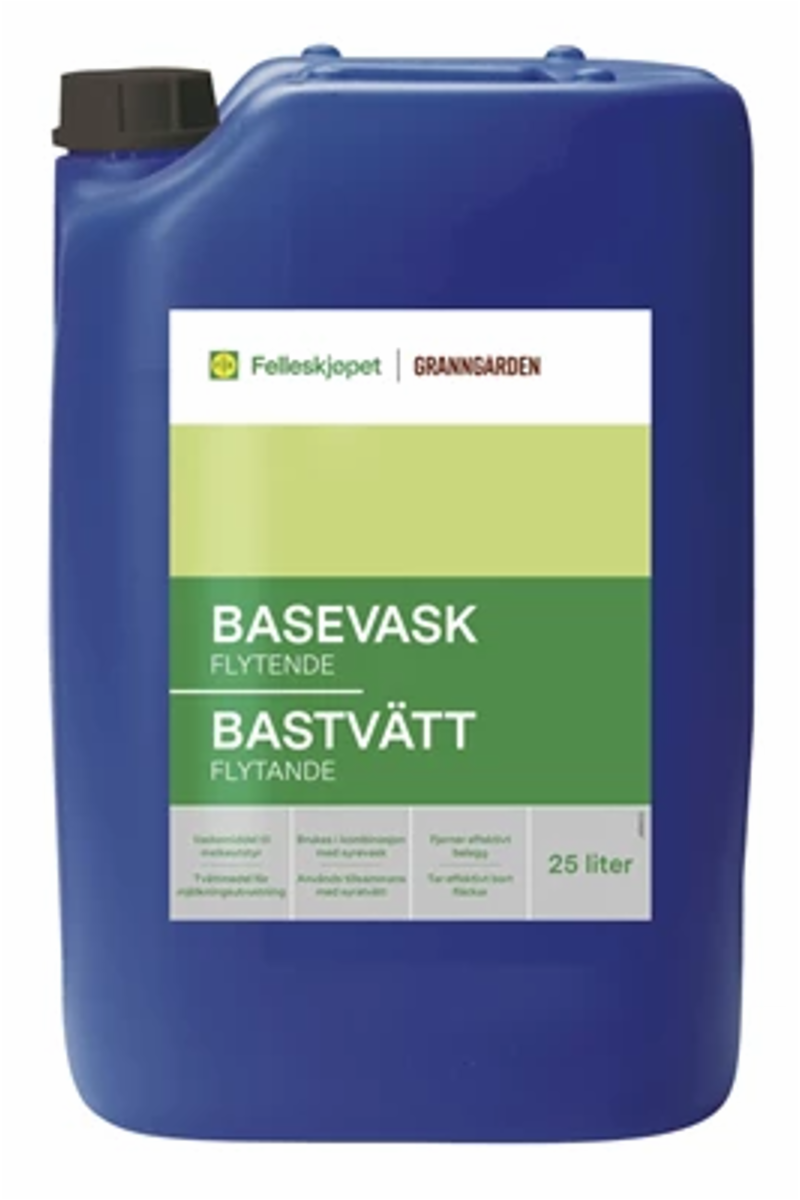 FK basevask flytende er et alkalisk vaskemiddel til bruk i melkeanlegg og melketanker.