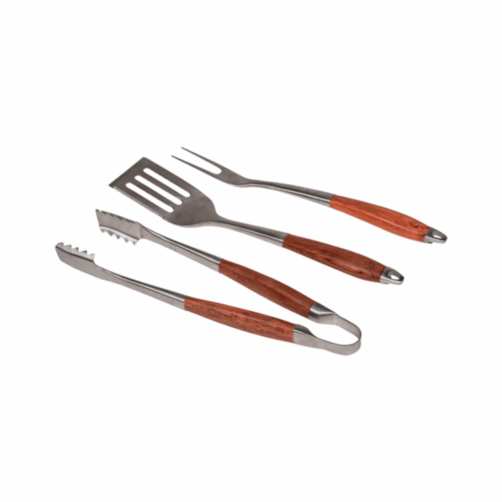 I tre deler av svært høy kvalitet. Består av grillklype, steikespade og tranchergaffel. Laget i børstet, rustfritt stål med håndtak av tre. Kommer i skinnetui. L: 40 cm
