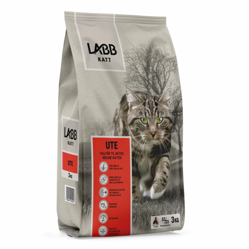 Labb Ute har et høyt innhold av lettfordøyelig og hydrolysert animalsk protein fra kylling. Energi- og næringsinnhold er tilpasset voksne aktive katter som oppholder seg mye ute. Det høye energiinnholdet gjør at Labb Ute også passer godt til katter som trenger å legge på seg.