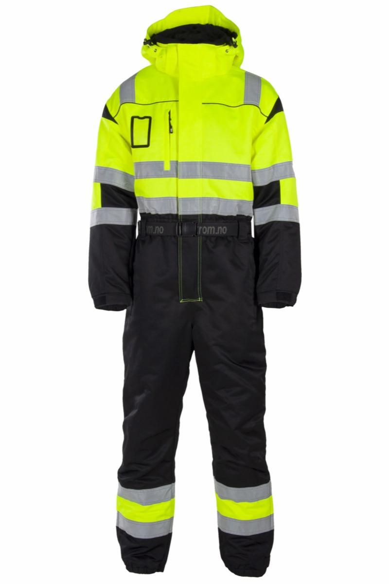 Vinterkjeledress med belte. ID-kortlomme høyre bryst, brystlomme og stikklommer med glidelås. Borrelåsstramming rundt håndledd. Glidelås med klaff i front. Lang glidelås med borrelåsklaff i bein. Refleks på mage, ermer, skuldre og bein. Belte.