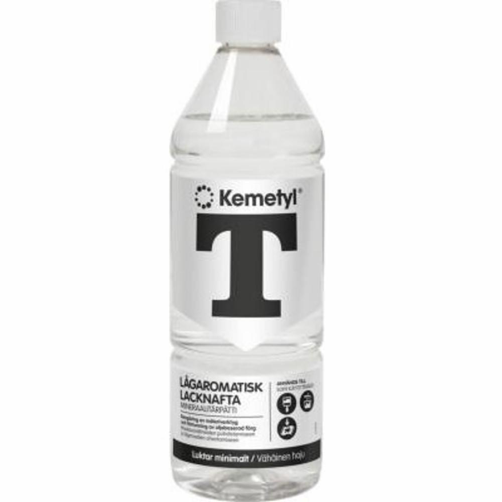 Kemetyl White Spirit for tynning av olje- og akrylfarger etter fargeprodusentens anvisninger. Rengjøring av maleverktøy som er brukt til farger som bare er tynnet med White Spirit. Brukes også som flekkfjerner på gulv, malte flater, kakkel, tekstiler, møbler m.m hvis underlaget tåler lakknafta. White Spiriten er avaromatisert, noe som betyr at den bare avgir svak lukt og er mindre helse- og miljøskadelig enn vanlig lakknafta. Faremerking: Helseskadelig.