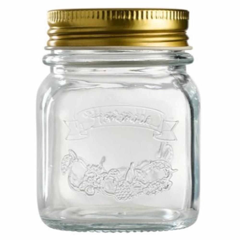 Glass med skrulokk som rommer 0.25 liter. Ideel til syltetøy, hermetisering eller annen mat. Skal glasset steriliseres med kokende vann så skal det først forvarmes med varmt vann fra springen.