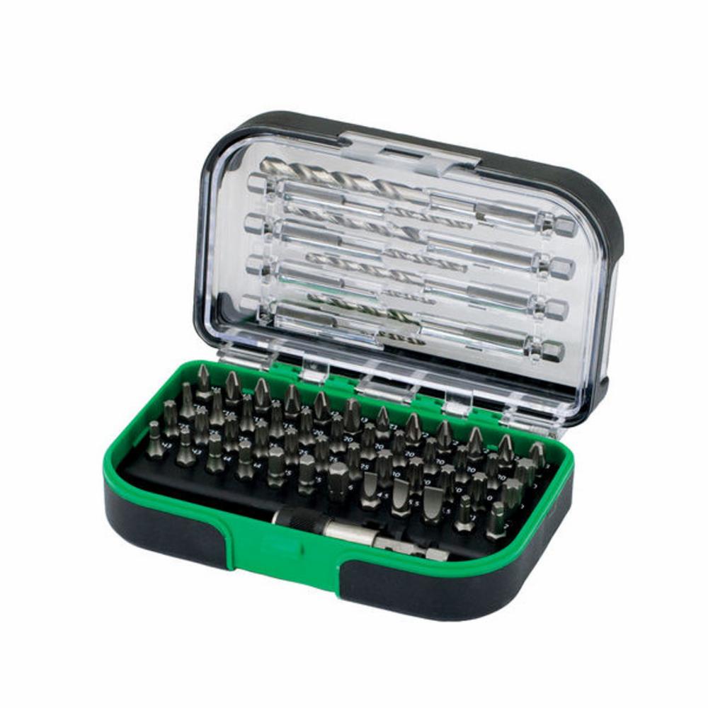 - Innhold: 1 stk bitsholder med hurtigfeste, Bor: 2 (x2), 3 (x2), 4 (x2), 5, 6, Phillips: 1, 2 (x4), 3, Pozidrive: 1, 2 (x4), 3, Torx: 10 (x2), 15 (x2), 20 (x7), 25 (x7), 30 (x4), 40, Sekskant: 3 (x2), 4 (x2), 5 (x2), 6, Spor: 4.5, 5.5, 6.5, Firkant: 1, 2