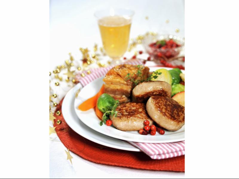 Kjøtt av svin (65 %), vann,
