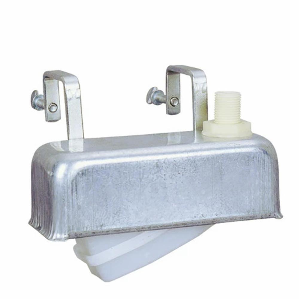 Flottørventil med ½″ tilkopling. Med to galvaniserte festebøyler for feste på kanten av trauet.