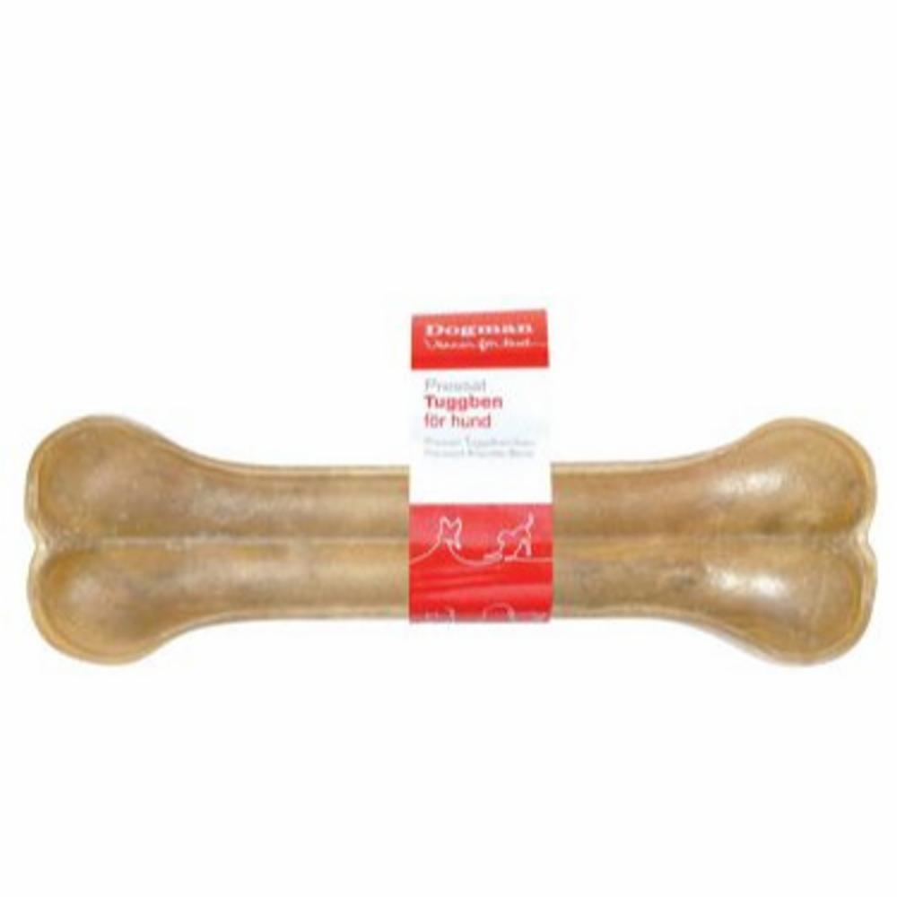 Presset tyggeben av høy kvalitet laget av ubehandlet råhud. Forlenger tyggetiden, dekker behovet for tygging og bidrar til en sunn tannhelse. Hold alltid hunden under oppsyn når den tygger på tyggeben.