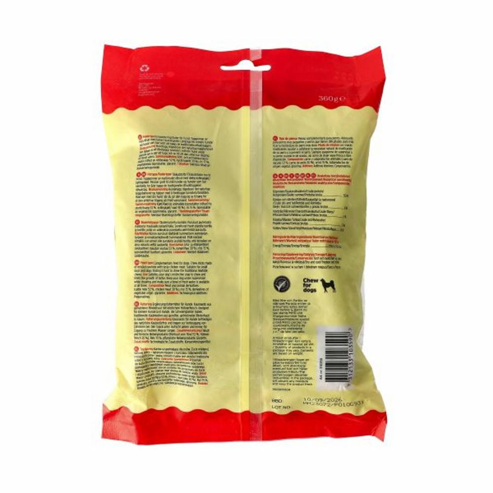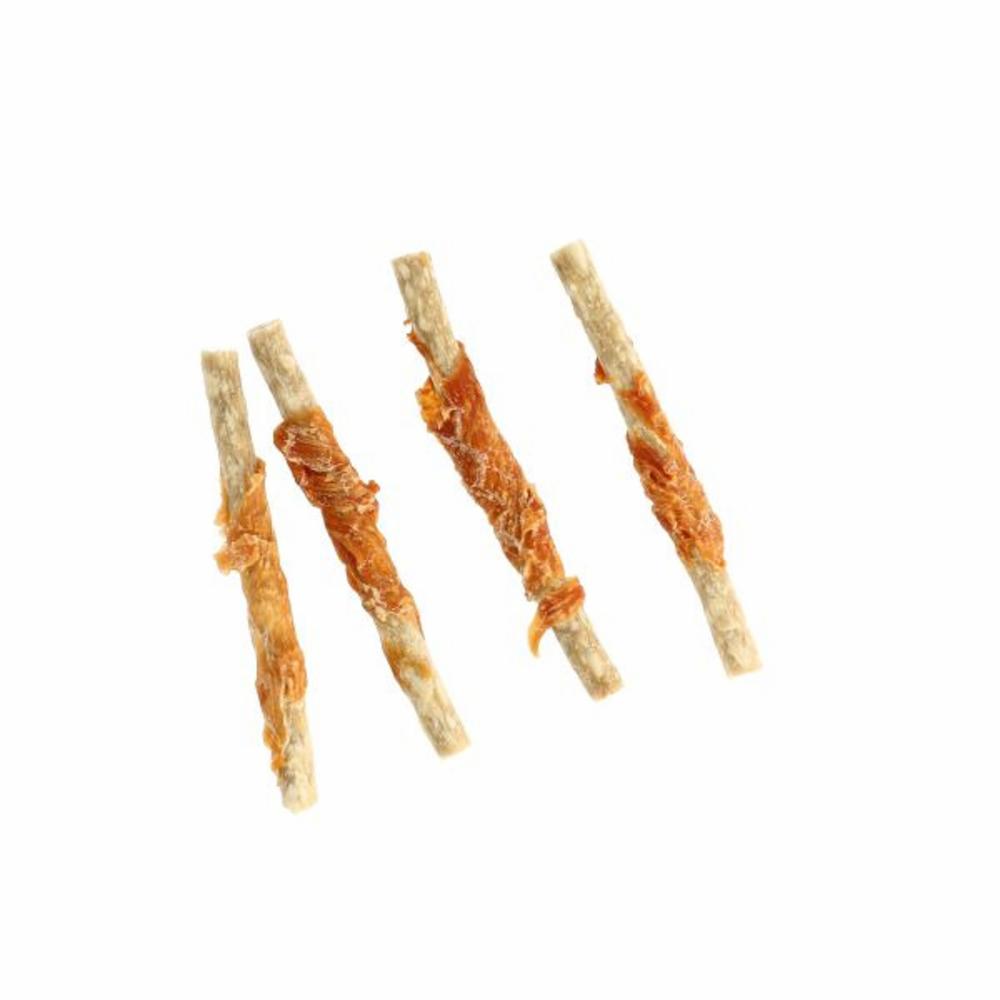Tyggepinner med smakfull kylling surret på utsiden. Enkel å tygge og derfor perfekt for hunder som trenger mindre tyggemotstand. Hold alltid hunden under oppsyn når den tygger på tyggeben. Laget av klasse A kylling.