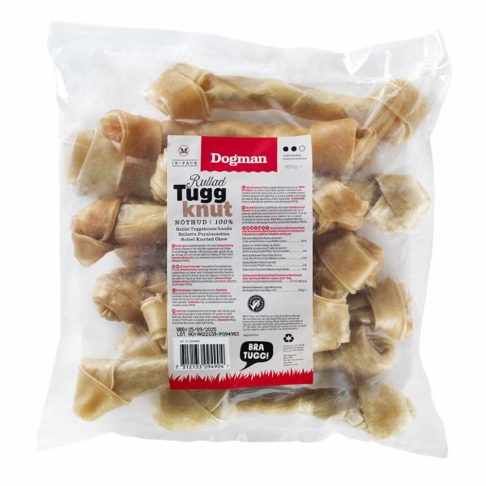 Naturlig tyggeknute av ubehandlet og rullet råhud av høy kvalitet. Forlenger tyggetid, dekker behovet for tygging og bidrar til en sunn tannhelse. Hold alltid hunden under oppsyn når den tygger på tyggeben.