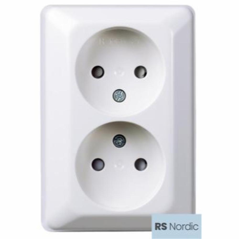 RS Nordic dobbel stikkontakt påvegg uten jord, med barnevern.