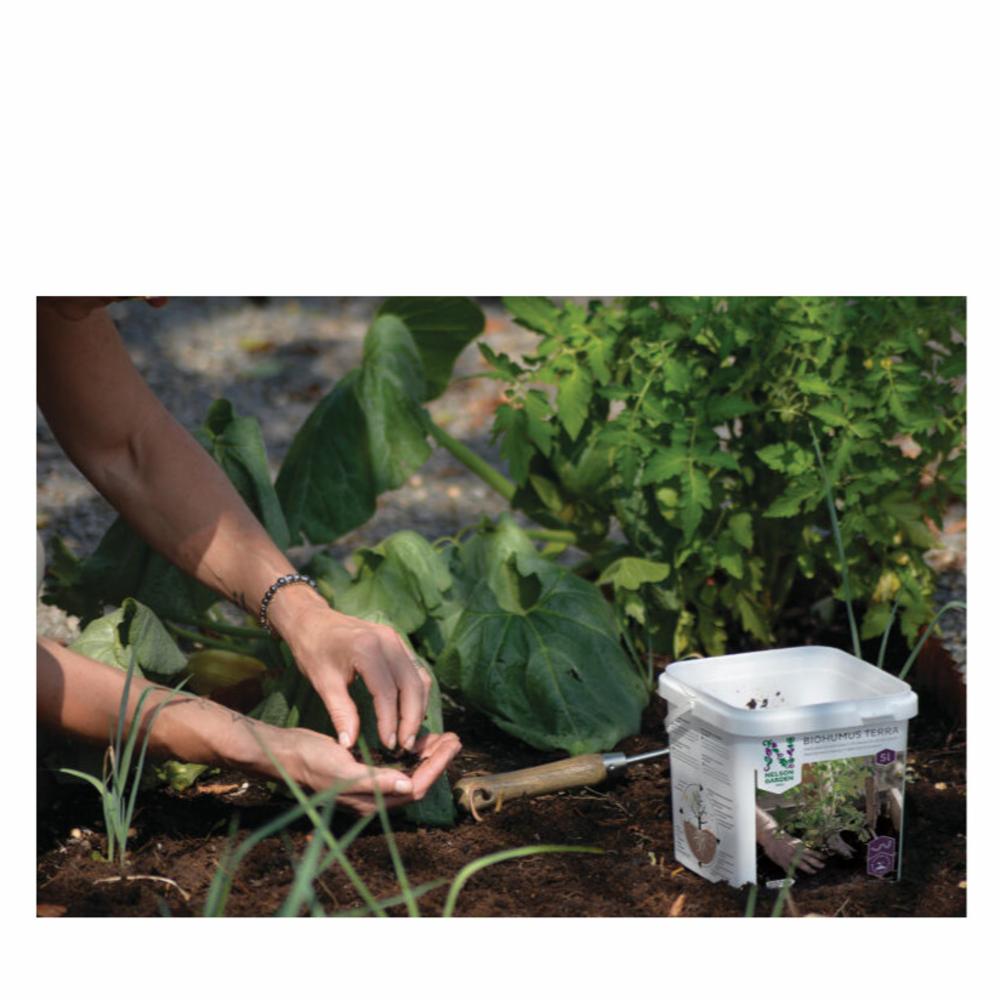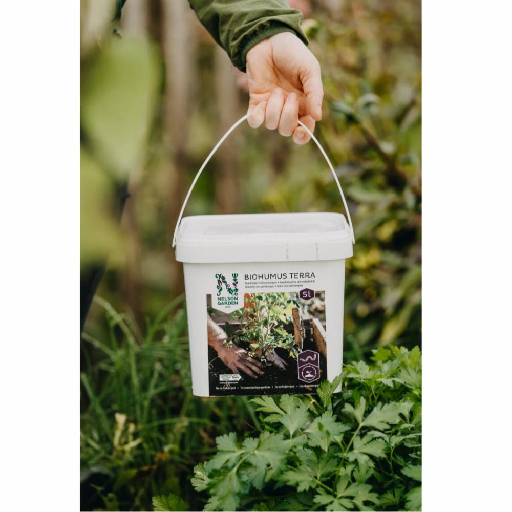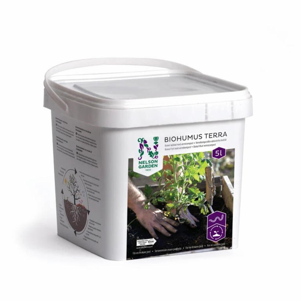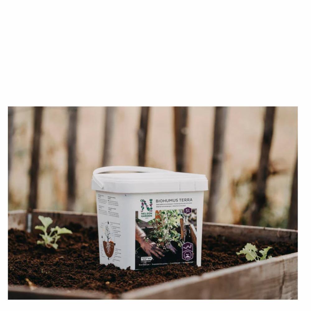 Biohumus Terra er mild mot planterøtter og forbedrer jord utendørs og i drivhus. Biohumus Terra tilfører mikroliv og karbon, og kan brukes til perenner, planting av busker og trær, ved dyrking av grønnsaker, urter og sommerblomster i bed, pallekarmer eller større potter og urner.