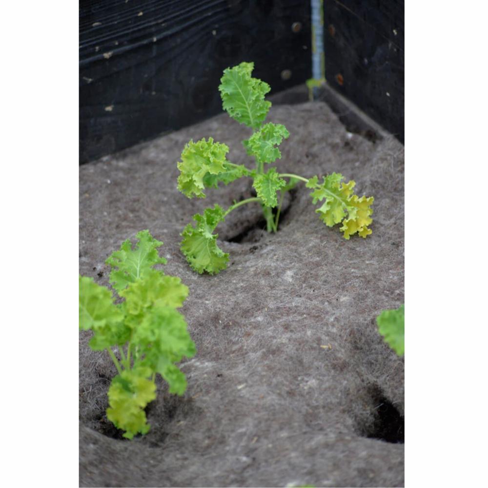 100 % naturprodukt. Praktisk dyrkingsduk i ull som bidrar til å beholde jordens temperatur og fuktighet. Den beskytter plantene mot f.eks. uttørking og bidrar til å holde ugresset borte.