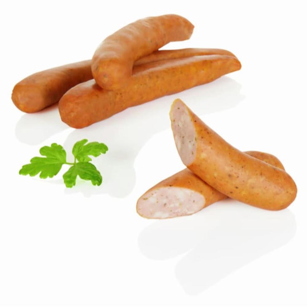 Kjøtt av svin (80 %), vann, potetmel, salt, kaliumklorid (salterstatter), dekstrose (mais), krydder, stabilisator e451, hydrolysert vegetabilsk protein (mais), løk, antioksidant e315, konserveringsmiddel e250, e261, e326. importert fåretarm. røkt med bøkeflis.
