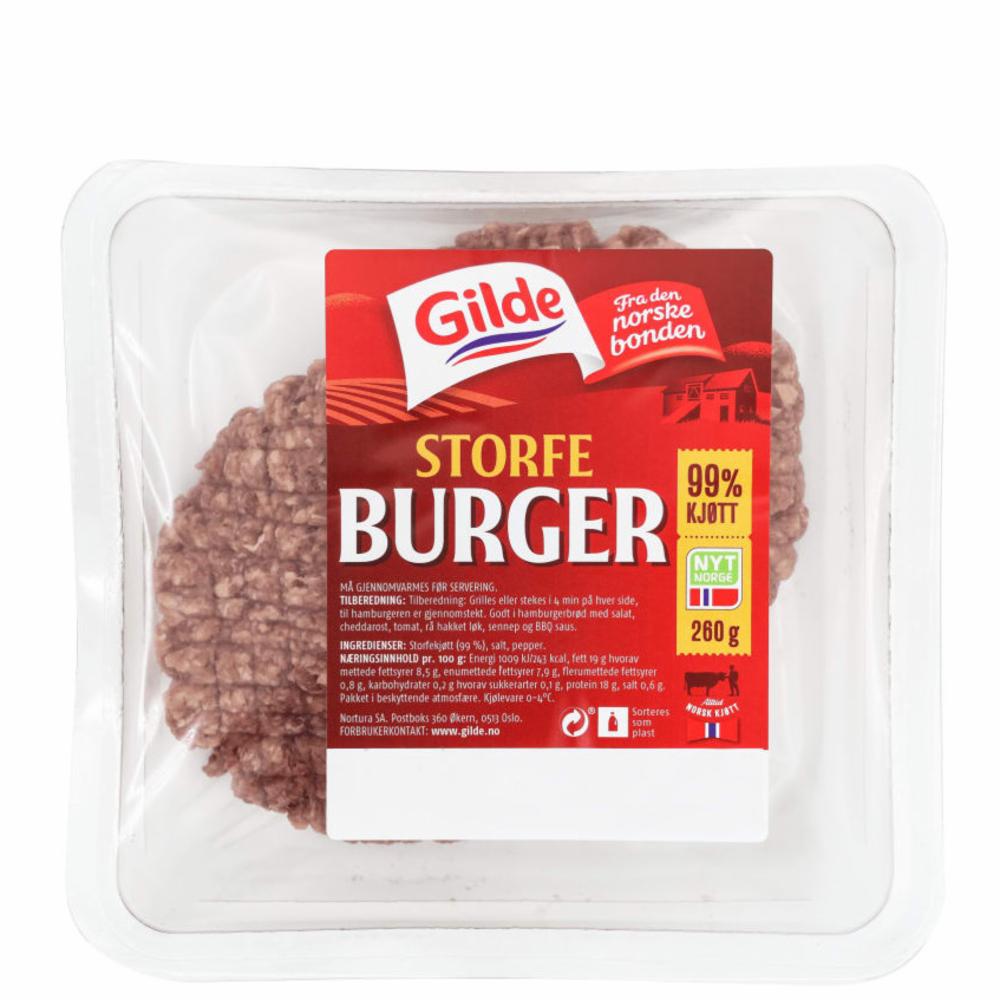 Fersk og god burger av storfe. Gilde bruker kun norske kjøttråvarer fra norske gårder.