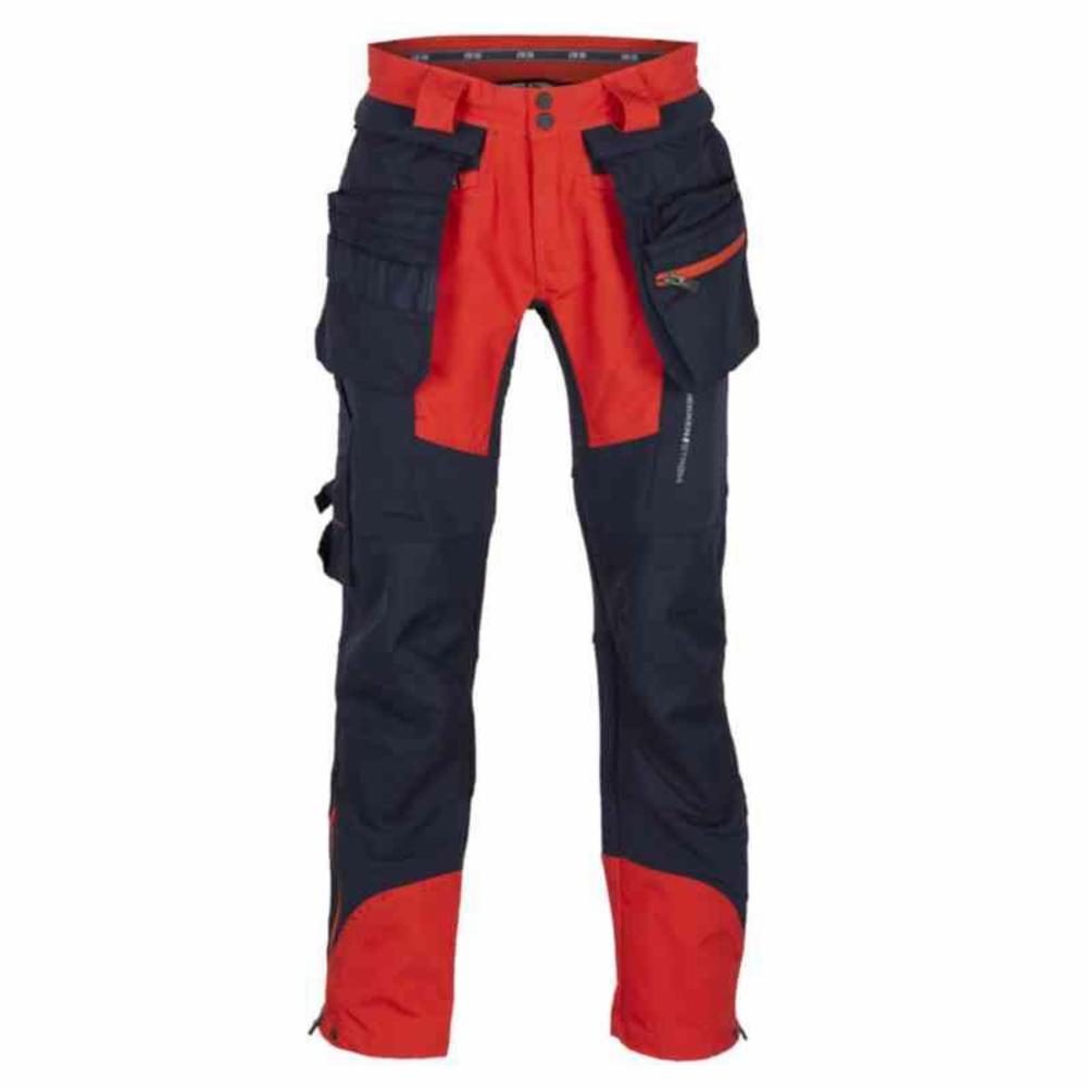 Håndverksbukse dame med formsydde ben og paneler i 4-veis stretch for best mulig bevegelsesfrihet. T-stykke i skritt. To-nålssøm i ben, lommer og skritt. YKK® glidelås i gylf, to trykknapper og borrelås i linning. Brede beltehemper. Hempe med borrelås til hammerholder i begge sider i linning. Forlommer med SBS glidelås. Hengelommer i slitesterkt nylon forsterket med dobbel bunn. Høyre hengelomme med ett fakk, to hylsterlommer og fire hemper. Venstre hengelomme med ett fakk, to hylsterlommer og bitslomme med SBS glidelås. Hengelommene er avtakbare med YKK® glidelås og trykknapper. Tommestokklomme i slitesterkt nylon med utvendig blyantlomme, skjult knapp for kniv og justerbart bånd for slire. Tommestokklommen er delvis festet for best mulig bevegelsesfrihet. Lårlomme med glidelås på høyre ben. Lårlomme med SBS glidelås og innvendig ID-kortholder på venstre ben. Formsydde kneputelommer i slitesterkt nylon med utvendig innputt. SBS støvelglidelås i benavslutning og trykknapp for justering av benvidde.