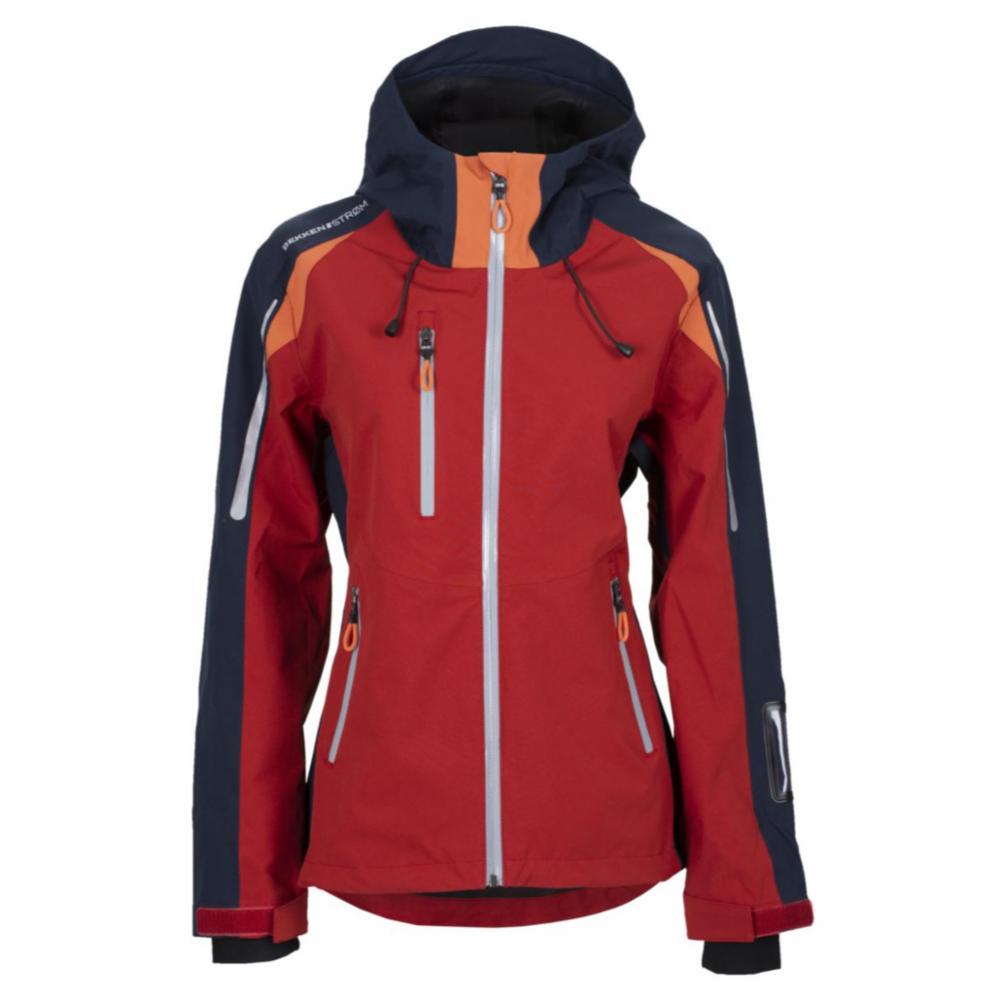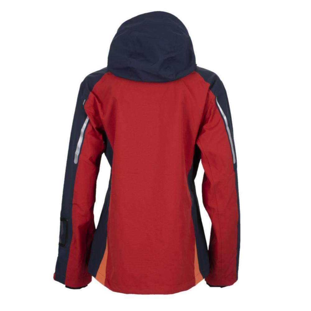 Skalljakke dame designet for best mulig bevegelsesfrihet. 2-veis mekanisk stretch materiale. Pustende, vind- og vanntett. Helteipet konstruksjon. Vannsøyle 13.000 mm, pustende 8.000 mm g/m² 24t. Polyester fôr i front. Høy krave og forlenget rygg. Vannavvisende YKK® glidelås i front som går helt opp i kraven, hakebeskyttelse. Lufting under ermer med vannavvisende SBS glidelås med klaff. Fullt justerbar hette med elastisk strammesnor i åpning og bak. Forlommer med diagonal vannavvisende SBS glidelås. Høyre brystlomme med vannavisende SBS glidelås. Formskåret ermeavslutning med borrelåsregulering. Elastisk strammesnor i linning. Refleksdetaljer.