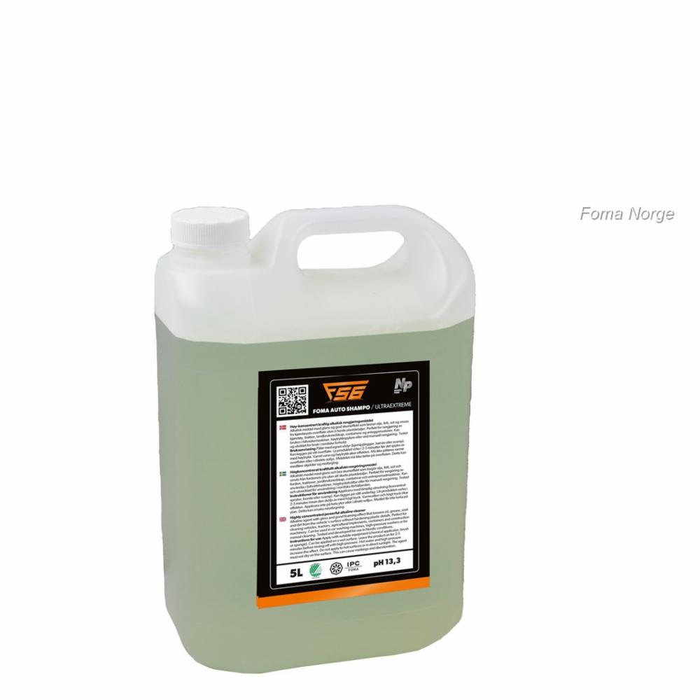 Høy-konsentrert kraftig alkalisk rengjøring og avfettingsmiddel Alkalisk middel med glans og god skumeffekt som løsner olje, fett, sot og smuss fra kjøretøyets overflate uten å herde plastdetaljer. Perfekt for rengjøring av kjøretøy, traktor, landbruksredskap, containere og anleggsmaskiner. Kan brukes i bilvaskemaskiner, høytrykkspylere eller ved manuell rengjøring. Testet og utviklet for bruk i nordiske forhold. Bruksanvisning Påfør med egnet utstyr (kjemipålegger, børste eller svamp). Kan legges på våt overflate. La produktet virke i 2-5 minutter før det spyles av med høytrykk. Varmt vann og høytrykk øker effekten. Må ikke påføres varme overflater eller i direkte sollys. Middelet må ikke tørke på overflaten. Dette kan medføre skjolder og misfarging.