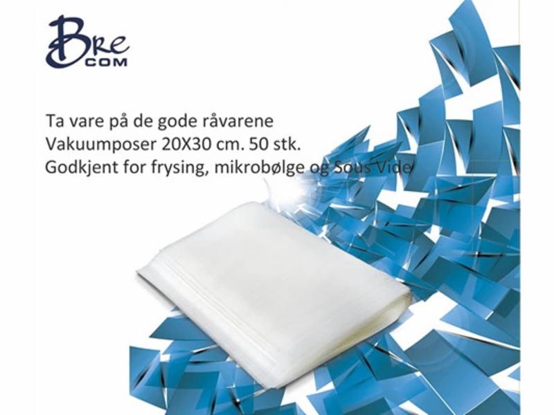 Pakken inneholder 50 poser à 20x30 cm, og passer alle våre vakuumpakkere foruten om MiniVac som bruker egne poser med ziplock funksjon. Posene finnes også i størrelsen 25x35 cm.