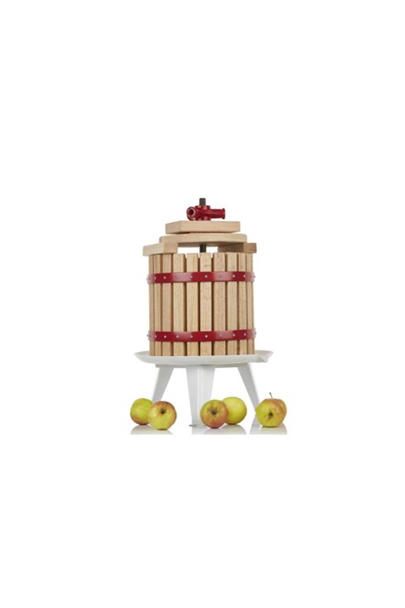 Fruktpresse i stål og tre til fremstilling av juice, cider og saft av fruktmos eller bær.