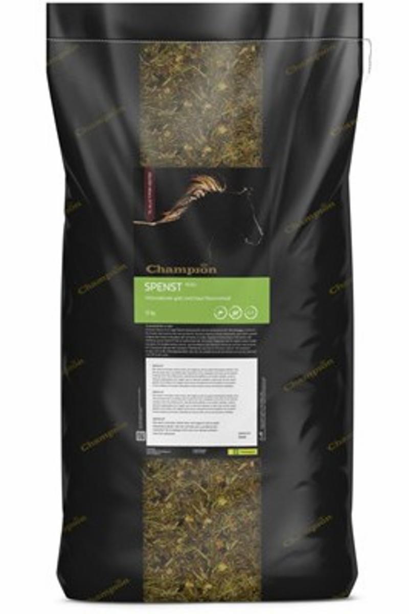 Velsmakende grøt med høyt fiberinnhold. Champion Spenst er sammensatt av sunne og smakfulle fiberråvarer uten ekstra tilsetning av vitaminer og mineraler. Fôret påvirker derfor ikke hestens daglige vitamin- og mineraltilførsel. Fiber er gunstig for å opprettholde en optimal fordøyelse. Champion Spenst skal fôres oppbløtt i samme mengde vann som fôr. Man kan med fordel bruke varmt vann og tildele fôret som en varm grøt. Måltidet trenger kun 15 minutter bløtlegging før fôring. Champion Spenst inneholder ertefiber som i nyere forskning har vist seg å være en spesielt gunstig råvare for hestens fordøyelsessystem. Fôret inneholder ingen kornråvarer eller melasse, og har derfor et svært lavt innhold av sukker og stivelse. Kan med fordel brukes av stivelsesintolerante hester. På grunn av sitt høye fiberinnhold har Champion Spenst egenskaper i fordøyelsessystemet som tilsvarer grovfôr, og hesten trenger ikke lang tilvenningstid til fôret. Det kan derfor gjerne brukes kun på dager der hesten har gjort hardere arbeid enn vanlig, og trenger ikke å gis daglig.Fôret er svært lett å tygge, og egner seg også godt til seniorhesten og hester med dårlige tenner eller tyggefunksjon. Med sitt høye fiberinnhold og lave stivelsesinnhold egner fôret seg godt etter sykdom i fordøyelsessystemet, for eksempel ved oppfôring etter kolikk. Den gode smaken gjør fôret velegnet til innblanding av fôrtilskudd og medisner.Champion Spenst må brukes sammen med et fôr i Champions Blå serie eller Champion Multitilskudd for å dekke alle hestens vitamin- og mineralbehov.