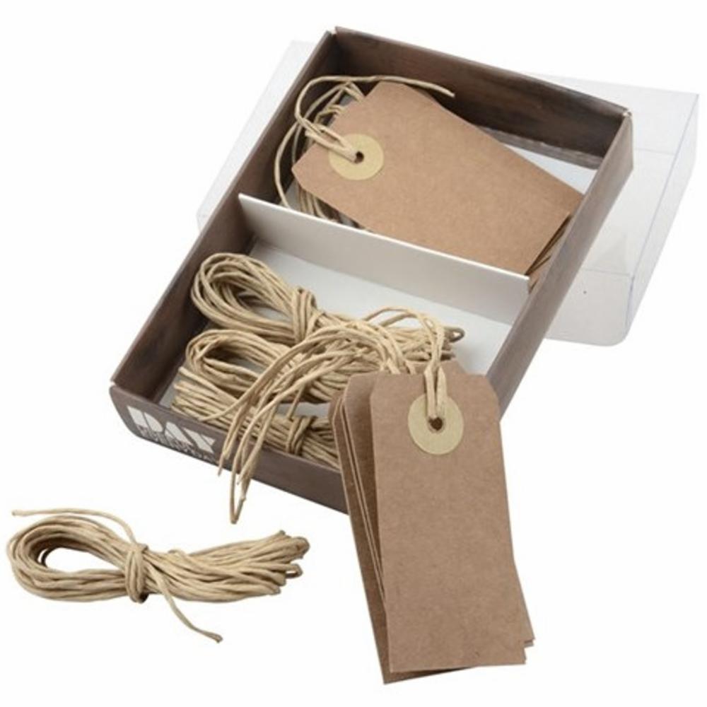 Søte små merkelapper i brun tynn papp. Perfekte til innpakning av gaver, eller merking av syltetøy, saft, gele eller annet. Pakken inneholder ti merkelapper og 4 snorer à 4 meter.
