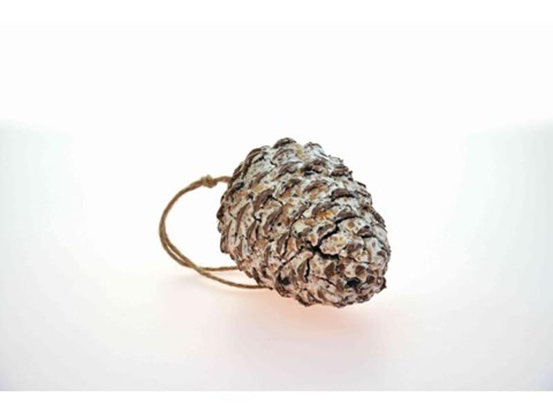 Et 100% naturprodukt! En stor kongle fylt med fett, oljerike frø og korn. Næringsrikt for småfuglene, dekorativt i hagen.