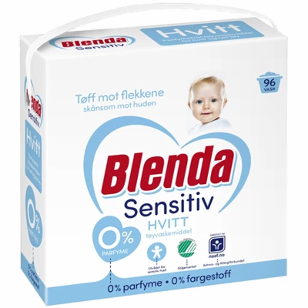 Blenda Sensitive sine produkter er parfymefrie og anbefalte av Astma og Allergiforbundet. Produktene er dermatologisk testet og er et skånsomt valg for følsom hud. Nå er Blenda Sensitive i pulverform oppdatert for å tilpasse seg behovene til barnefamilier enda bedre. Pulveret har blitt tøffere mot typisk barneflekker, men er fortsatt like snill mot huden!