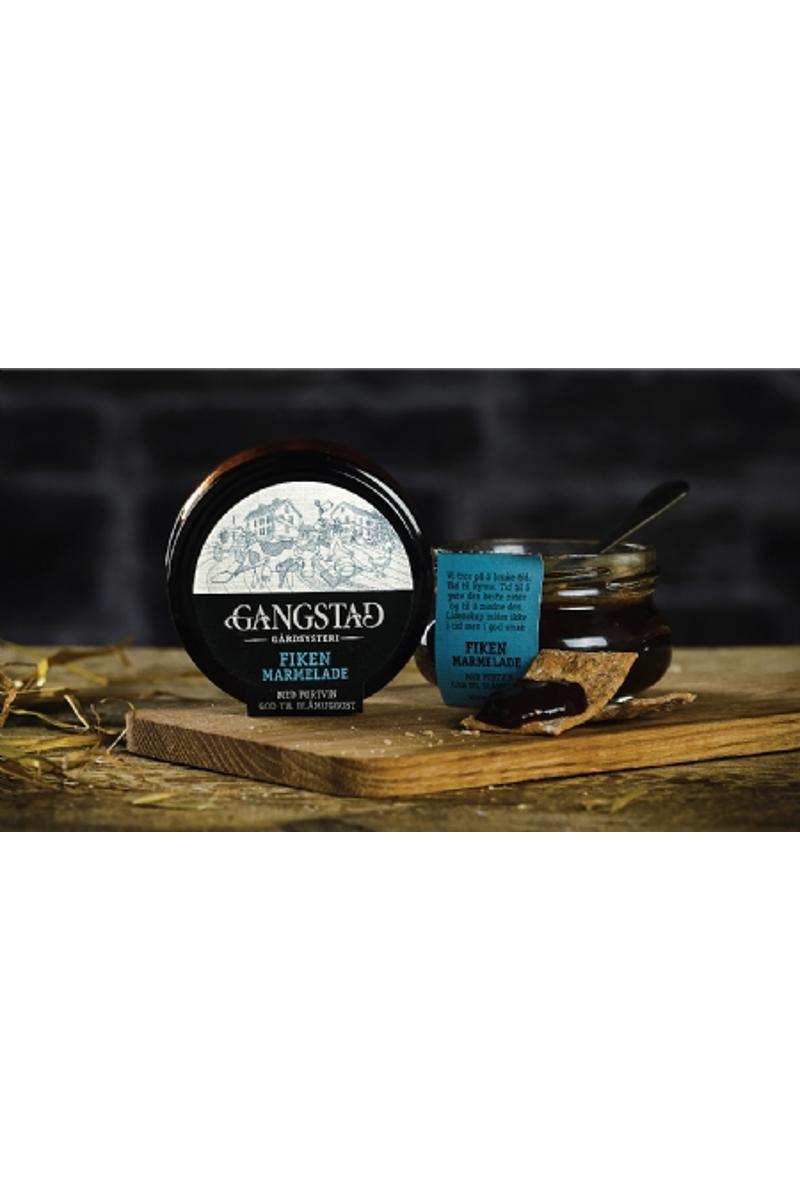 Marmelade av fiken og portvin. God til blåmuggost. Ingredienser: Fiken, aprikos, vann, sukker, portvin, kaliumsorbat.