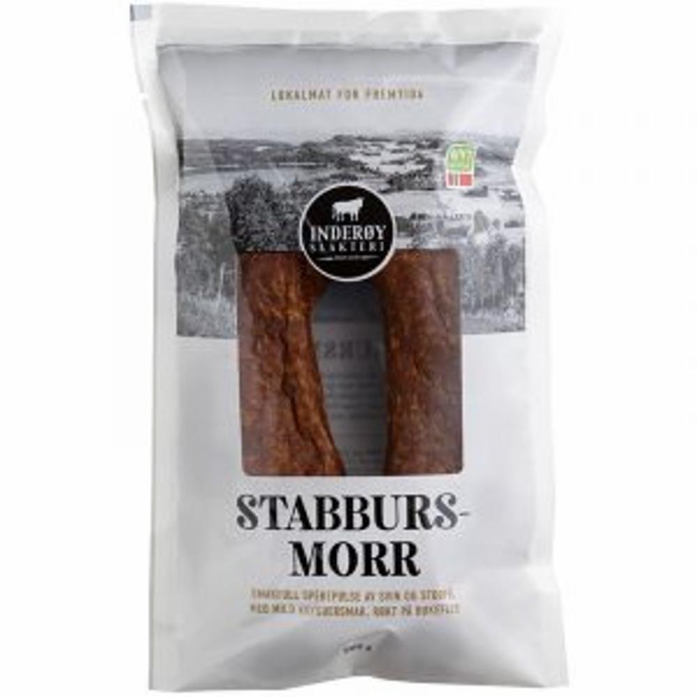 Oppskriften på Stabbursmorr har vært uforandret siden Inderøy Slakteris grunnlegger Jonas Pedersen skapte den på 30-tallet. Spekepølsa består av storfe- og svinekjøtt, er mildt krydret og røkt på bøkeflis.