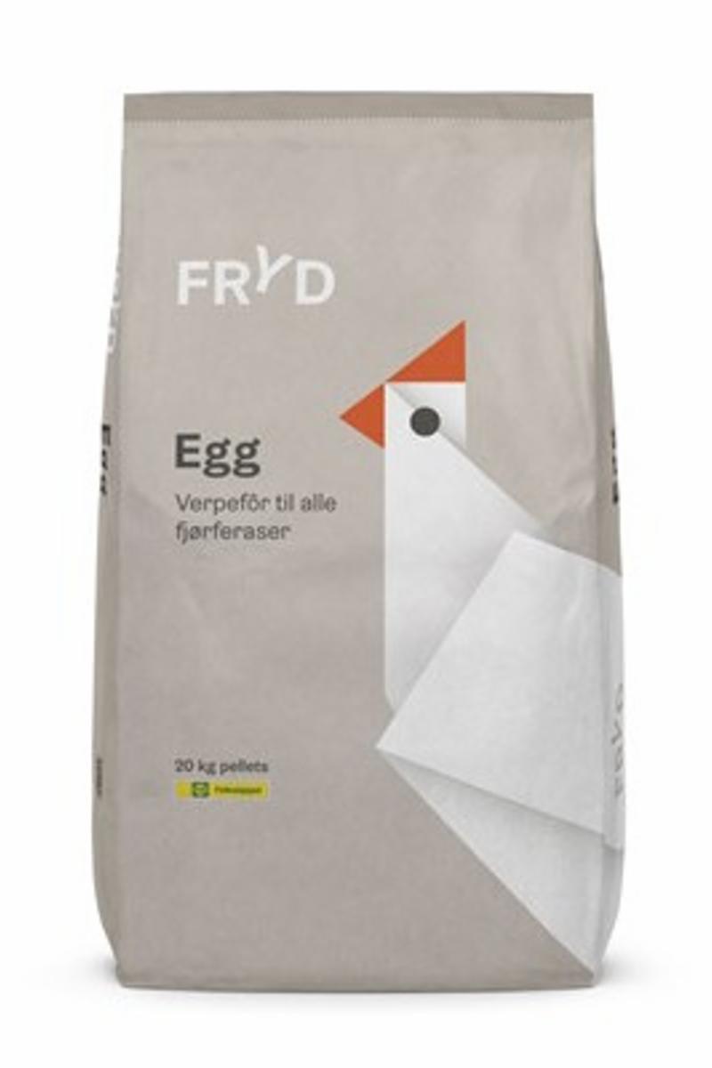 Fryd Egg er et kalsiumrikt verpefôr til alle fjørferaser. Fôret er utviklet for å sikre best mulig dyrehelse, optimal eggproduksjon og -skallkvalitet. Fryd Egg har en sammensetning som gir frisk, solgul eggeplomme. Høner som skal legge egg er avhengige av å få tilført mye kalsium for å kunne danne gode skall. Fryd Egg har høyt kalsiuminnhold, men det kan vær gunstig at gode eggleggere har tilgang til ekstra kalsium i form av skjellsand som de kan forsyne seg av etter behov. Dette er spesielt viktig etter ett års alder. Husk alltid tilgang til friskt vann. Fryd Egg er oppdatert etter ny forskning på verpehøns sine spesielle behov, og har likevel ivaretatt hobbyhøns sine noe andre krav til produksjonsintensitet.