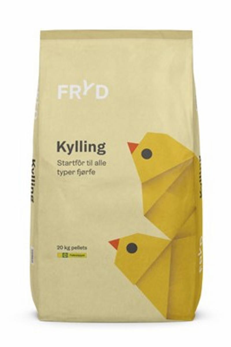 Fryd Kylling er et protein- og energirikt fôr med høy fordøyelighet. Dermed kan fordøyelsessystemet lett nyttiggjøre seg proteinet i fôret, og sikrer en god start til nyklekte kyllinger. Til kyllinger av høns, kalkun, ender og gjess anbefales fôret som et startfôr etter klekking. For å unngå for rask vekst og bløt avføring anbefales etterhvert overgang til Fryd Vekst, som har et lavere protein- og energiinnhold. Til vaktler, perlehøns, fasan og rapphøns anbefales fôret brukt gjennom store deler av livsfasen. Husk alltid tilgang til friskt vann.