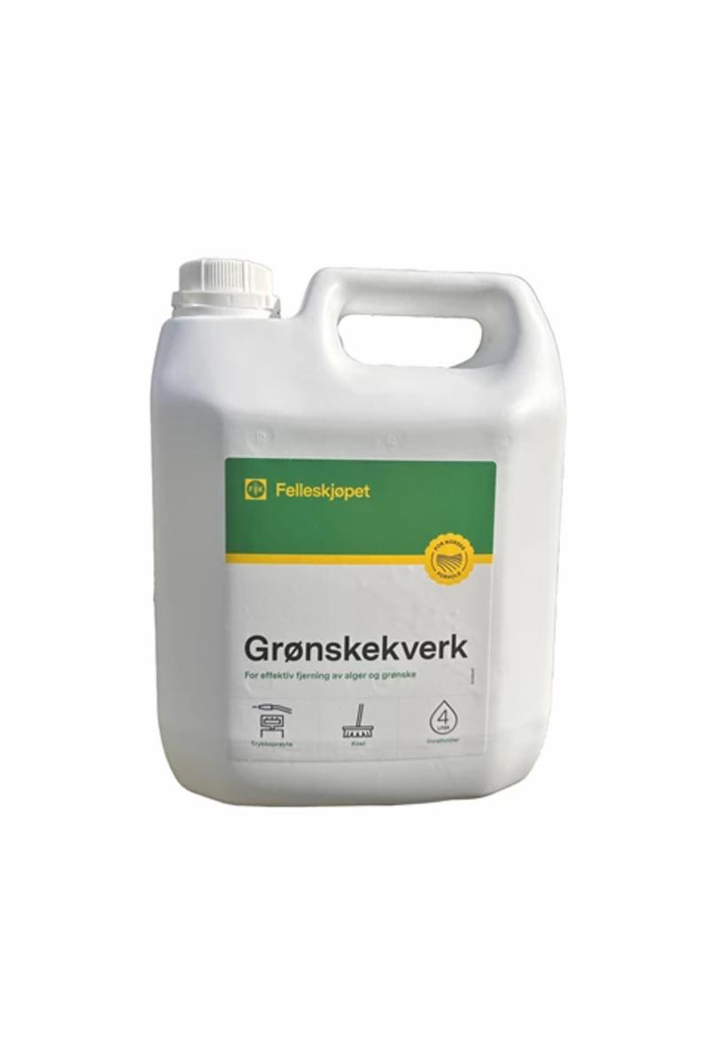 Felleskjøpet grønskekverk benyttes til enkel og effektiv fjerning av alger og grønske fra de fleste overflater utendørs.
