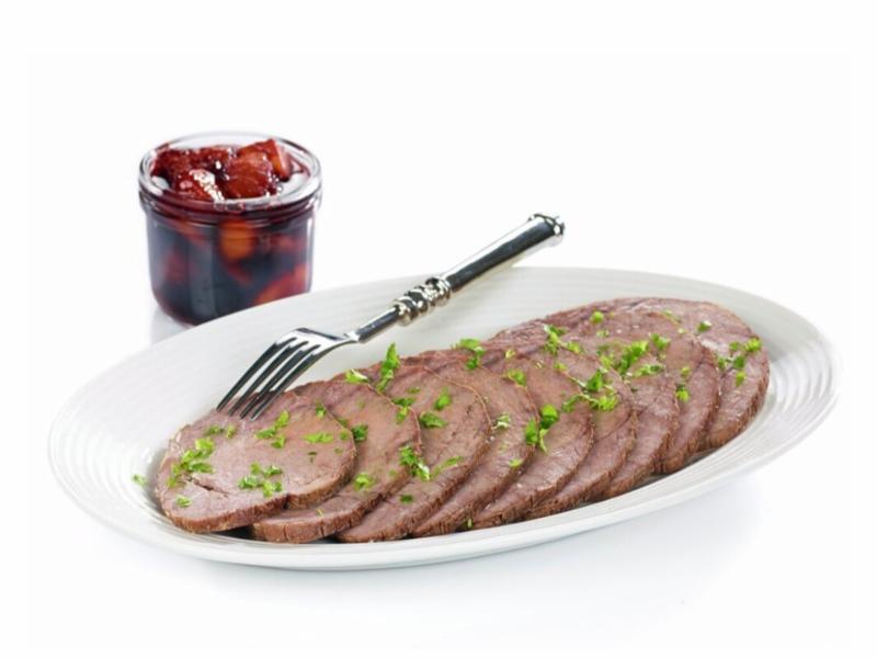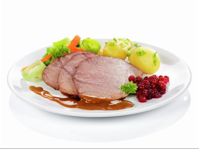 Benfri storfe bogstek (89 %), vann, salt, krydder, hydrolysert vegetabilsk protein (soya), farge E150.