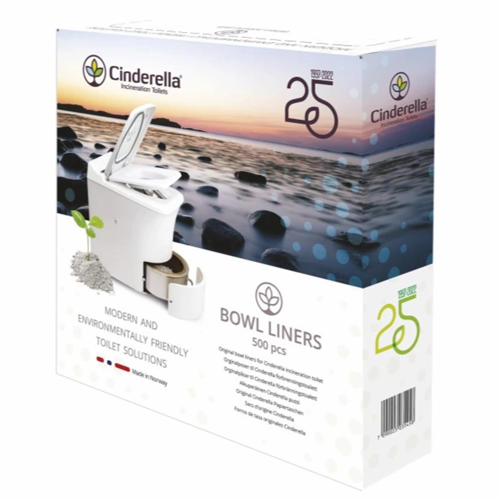 Originalposer til Cinderella forbrenningstoalett. Pakken består av 500 poser. Legges ned i toalettskålen før bruk.
