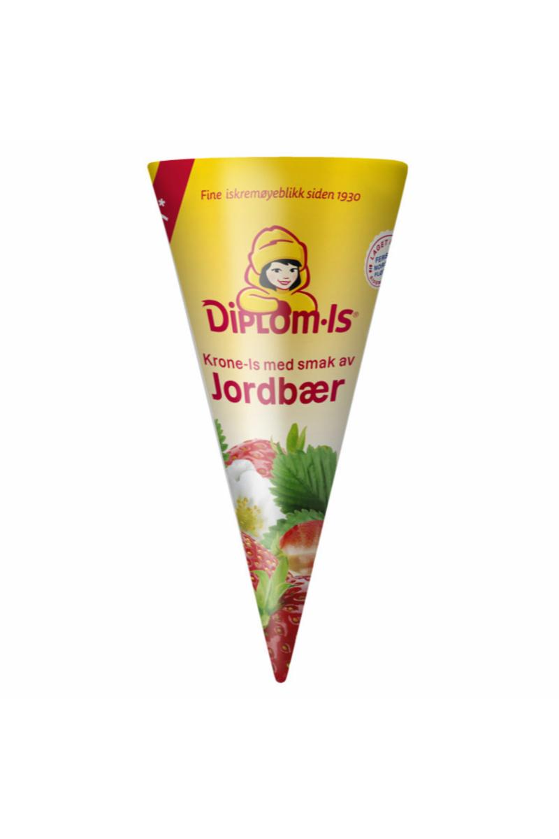 Klassikeren fra 1953 som passer ethvert iskremøyeblikk! Norsk fløteis med vaniljesmak i kjeks, pyntet med jordbærsyltetøy.